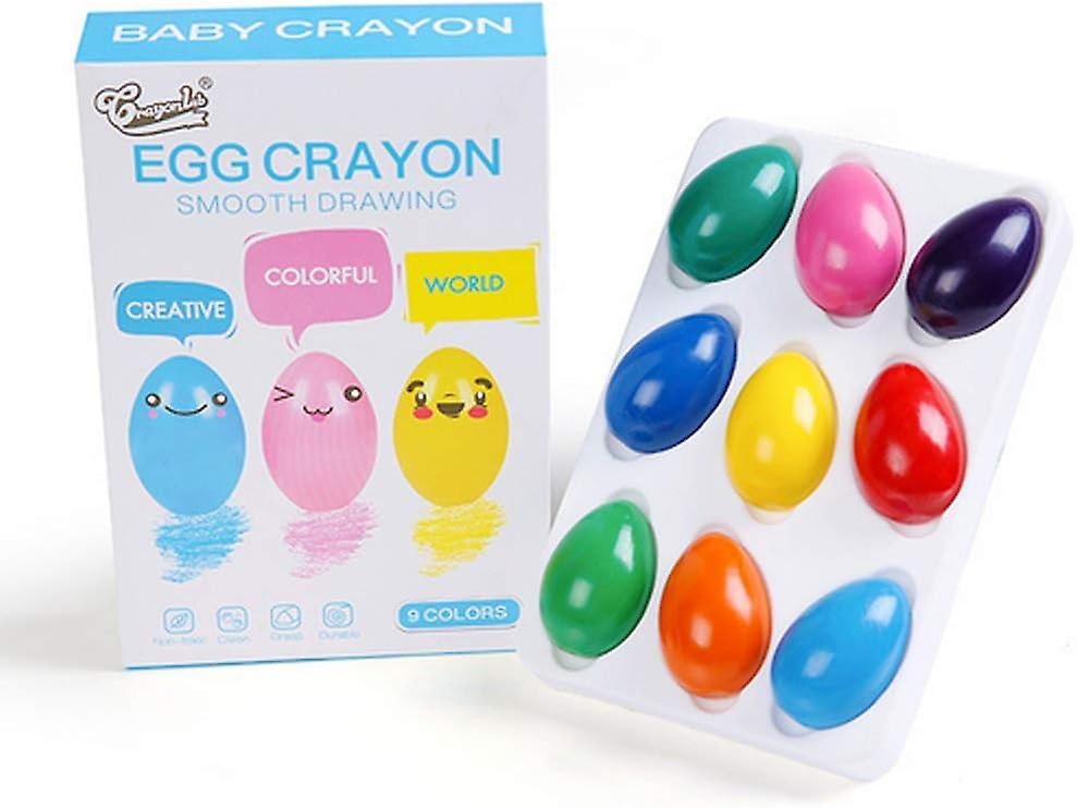 Kids Solid Egg Crayon Set Safe Non-toxic Washable Paint Crayons Baby Palm Grip Crayon Pens 9 Colours Interesting Fun Toy For Children Baby Boys Girls