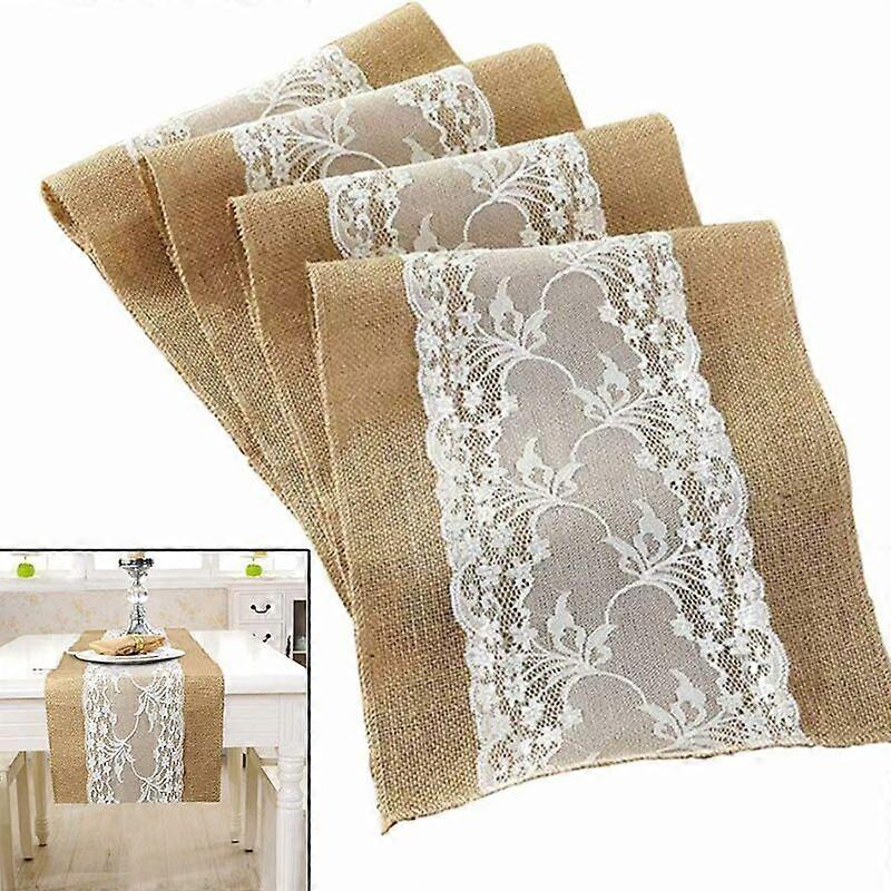 Vintage Rustic Table Runner White Burlap Tablecloth Lace Burlap Table Runner Christmas Winter Home Decorations for Wedding Festival Party Case Decorat