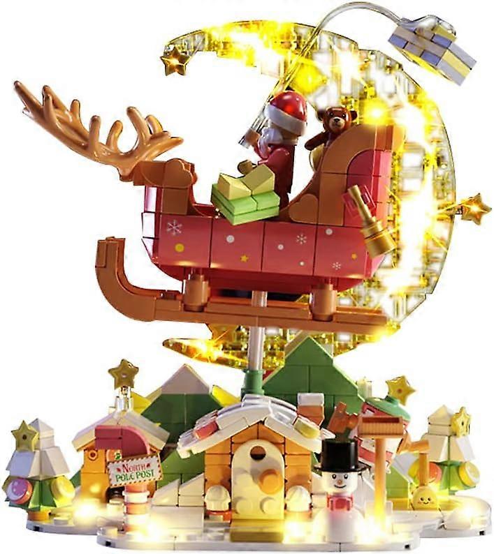 Christmas Santa's Sleigh Building Blocks Building Toys with LED Light Christmas Santa Claus Flying Bricks Xmas Blocks Kit Gift for Boys Girls