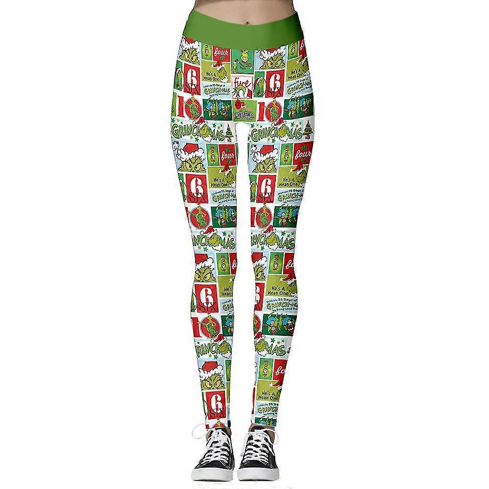 Women's Christmas Striped Grinch Snowflake Print High Waist Leggings New Style
