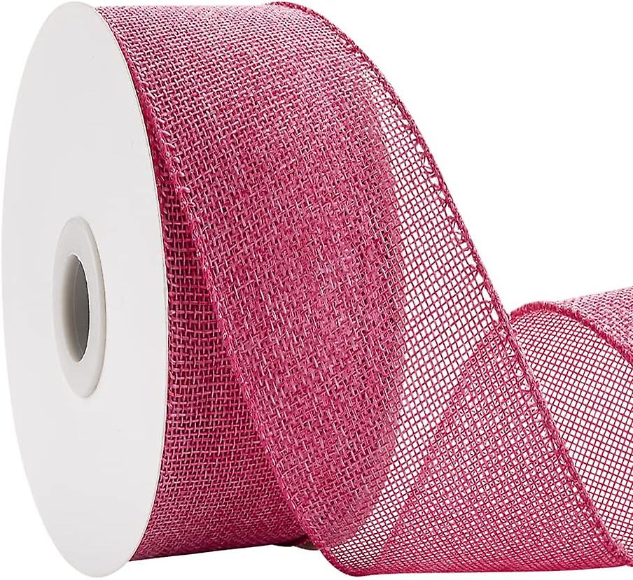 Hot Pink Burlap Wired Ribbon - 1-1/2 X Continuous 10 Yards For Crafts, Gift Wrapping, Wreaths, And Decorations