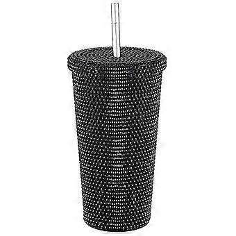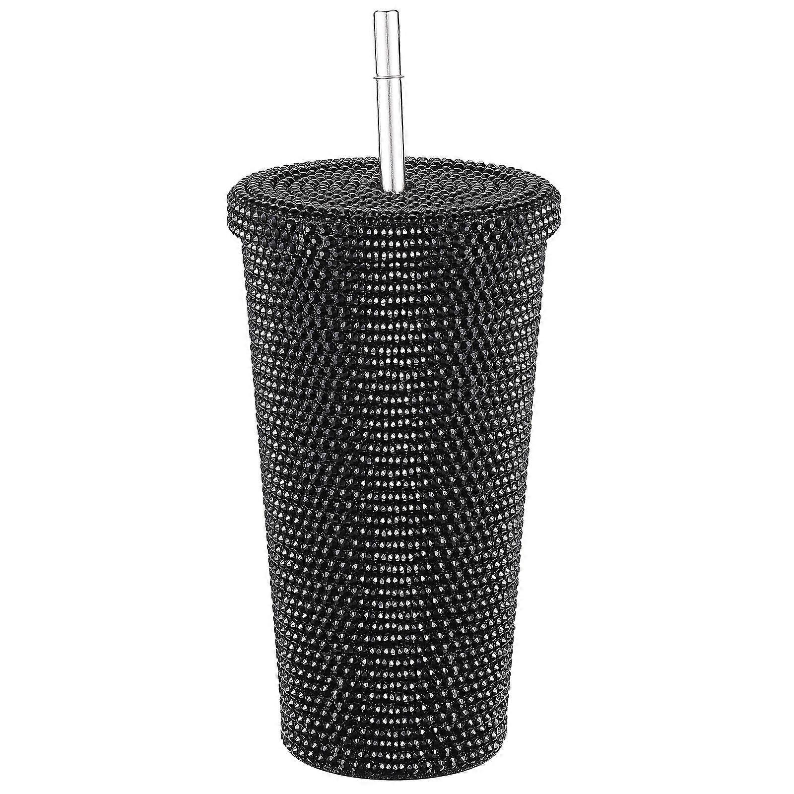 Studded Bling Diamond Tumbler Glitter Water Bottle with Lid Stainless Steel Vacuum Thermal Straw Tumbler Rhinestone Tumbler 500 Ml/17 Oz