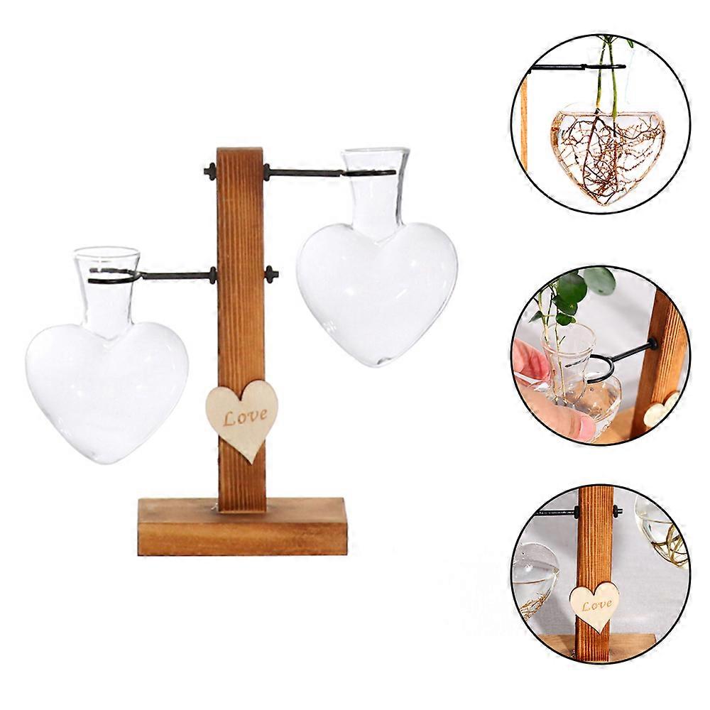 Vase-Heart Shaped Design Glass Test Tube Vase Flower Pots Plant Hydroponic Bonsai Pot with Wooden Tray