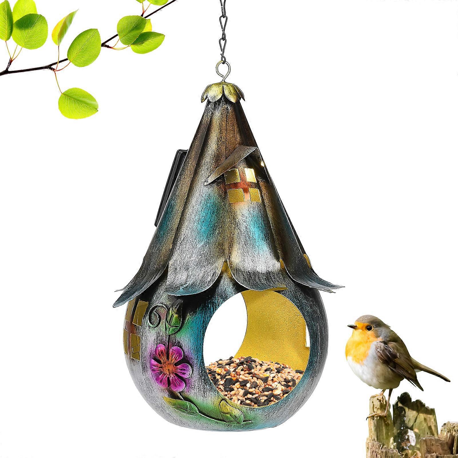 Solar powered bird house bird feeder,Novelty Bird House Feeder Bath Garden Hanging Nest Box Feeding Station Outdoor