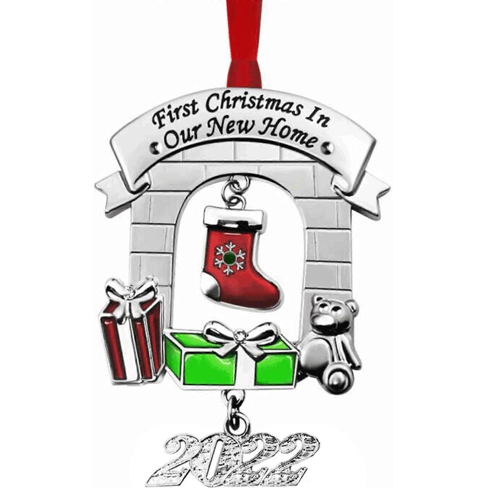 Christmas Decorations with Hanging Garlands - Christmas Tree Silver decorations with red Ribbon