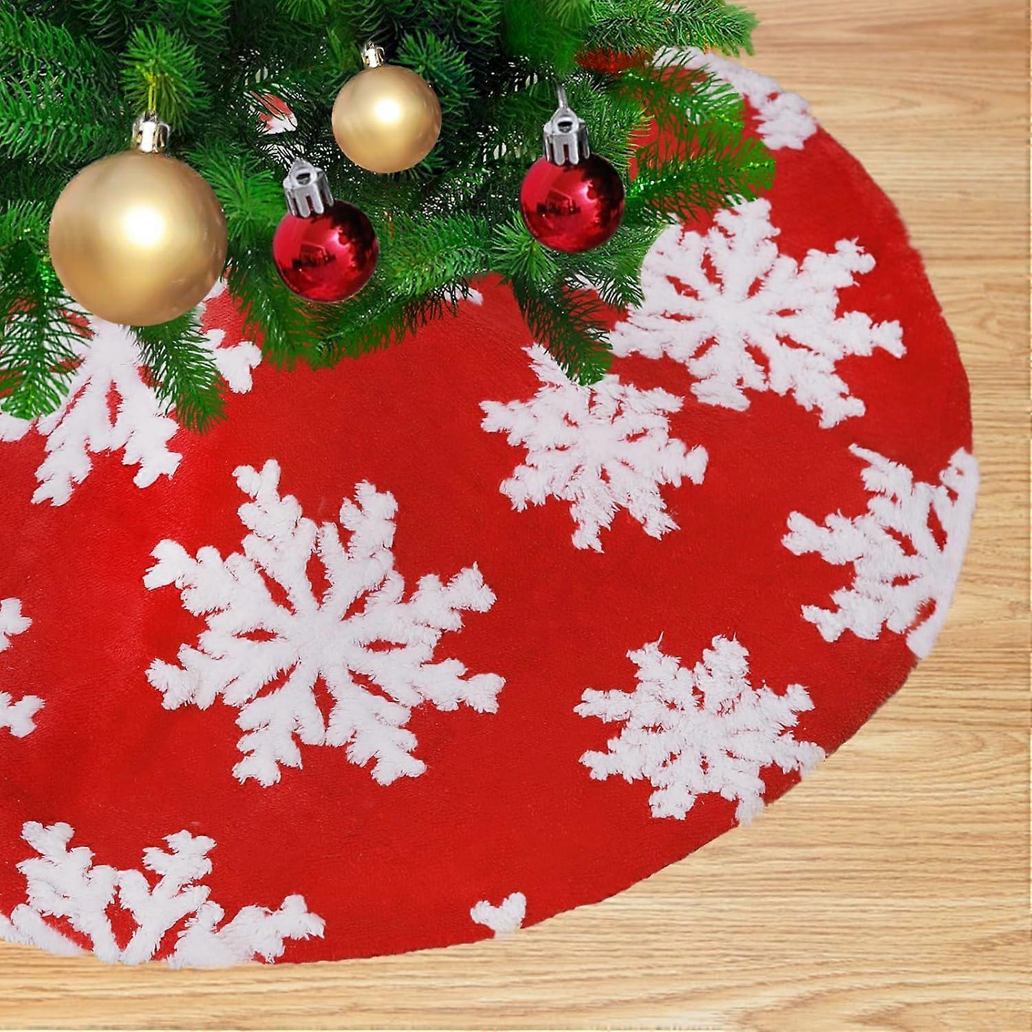 Snowflakes Christmas Tree Skirts 48 inch Large Red Tree Skirt Xmas Trees Round Mat for New Year Holiday Party Christmas Luxury Tree Ornaments