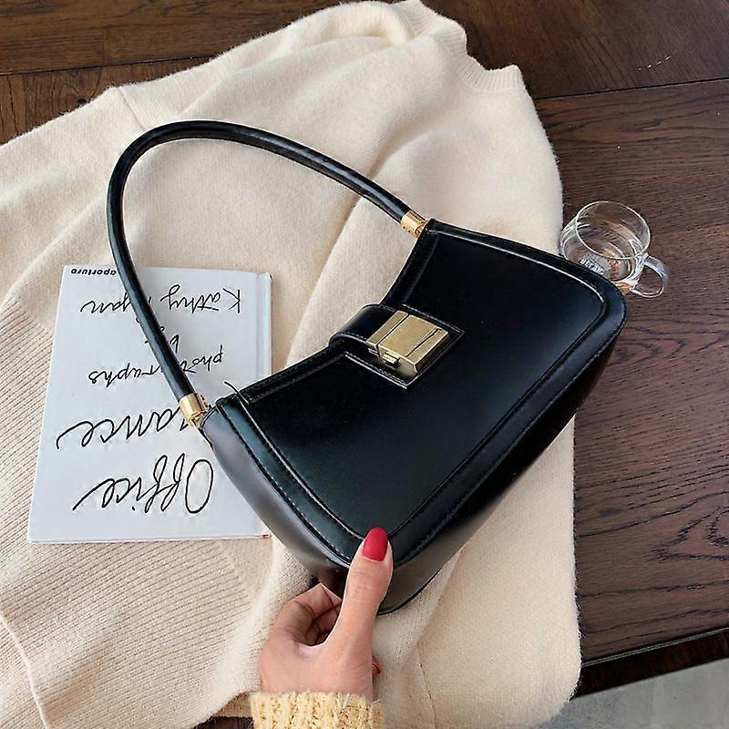 Solid Color PU Leather Shoulder Bags For Women 2022 hit Lock Handbags Small Travel Hand Bag Lady Fashion Bags,black