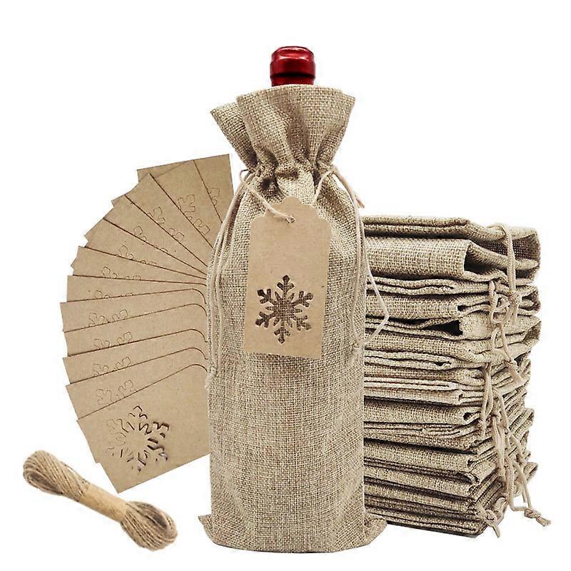 Burlap Wine Favor Bags, Jute Drawstring Wine Bottle Sleeves With Ropes And Tags For Christmas Wedding Travel Birthday Holiday,12 pcs