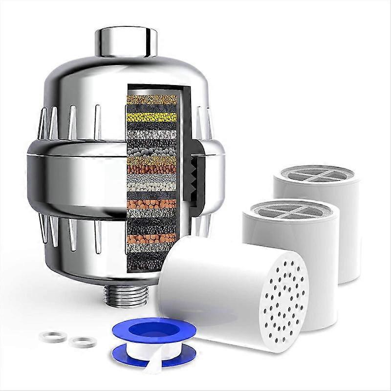 20-stage Shower Head Filter - High Output Shower Water Filter for Hard Water with 3 Replaceable Filter Cartridges