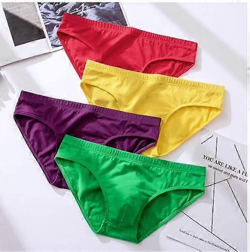 Men Cotton Plain Briefs Low-waist Underwear Underpants(Random color)