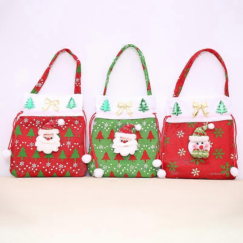 Children Non-Woven Candy Bags 3PCS Santa/Snowmans Festival Gift Gift Bag Toddler Boy Girl Holiday Stockings