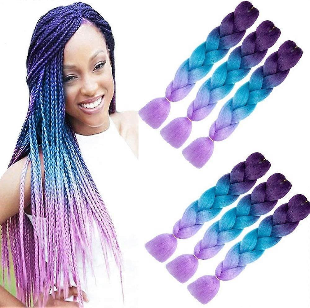 Dww-6 Pcs (Purple-Lake Blue-Purple) African Braiding Hair Extensions, Ombre Braiding Hair, Kanekalon Jumbo Synthetic Braiding Hair Extensions for Twis