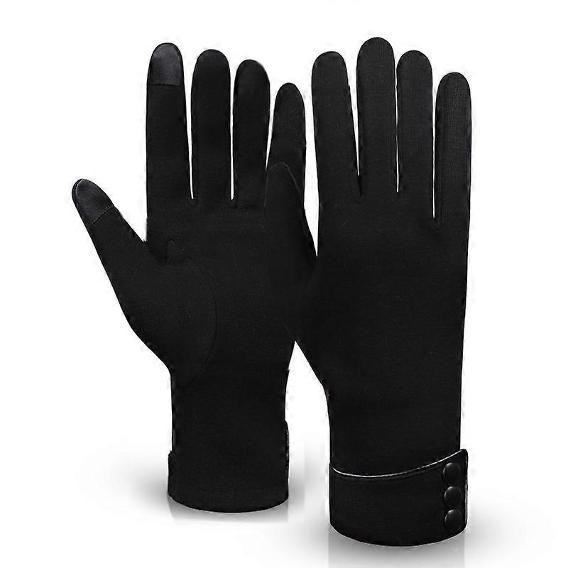 Black fleece gloves with three buckles