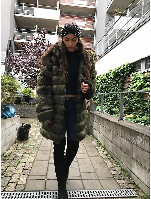 Faux Fur Jacket Extra Long -grön