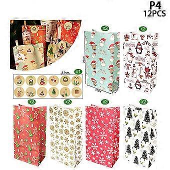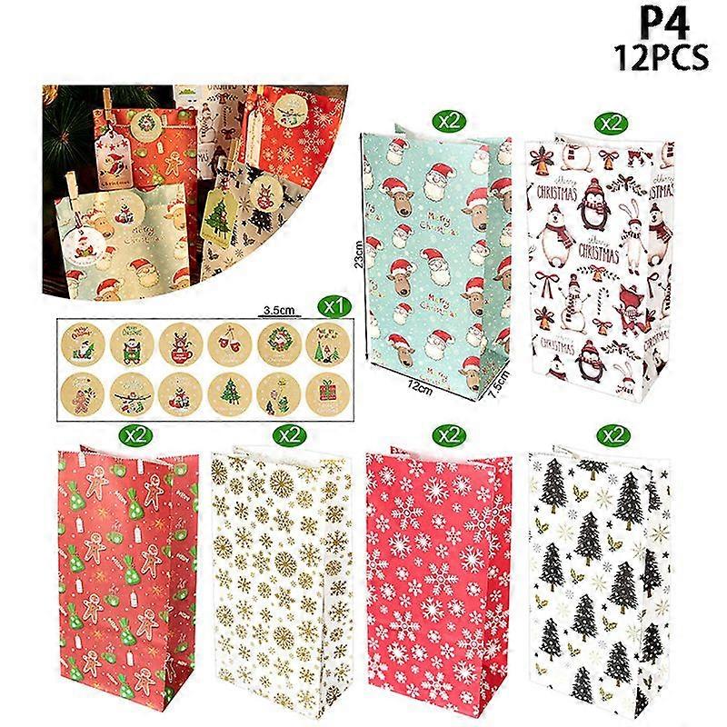 12Pcs Christmas Candy Gift Box With Tag Kraft Paper Cookies Gift Packing Bags 2023 Xmas Party Home Decoration New Year 2024