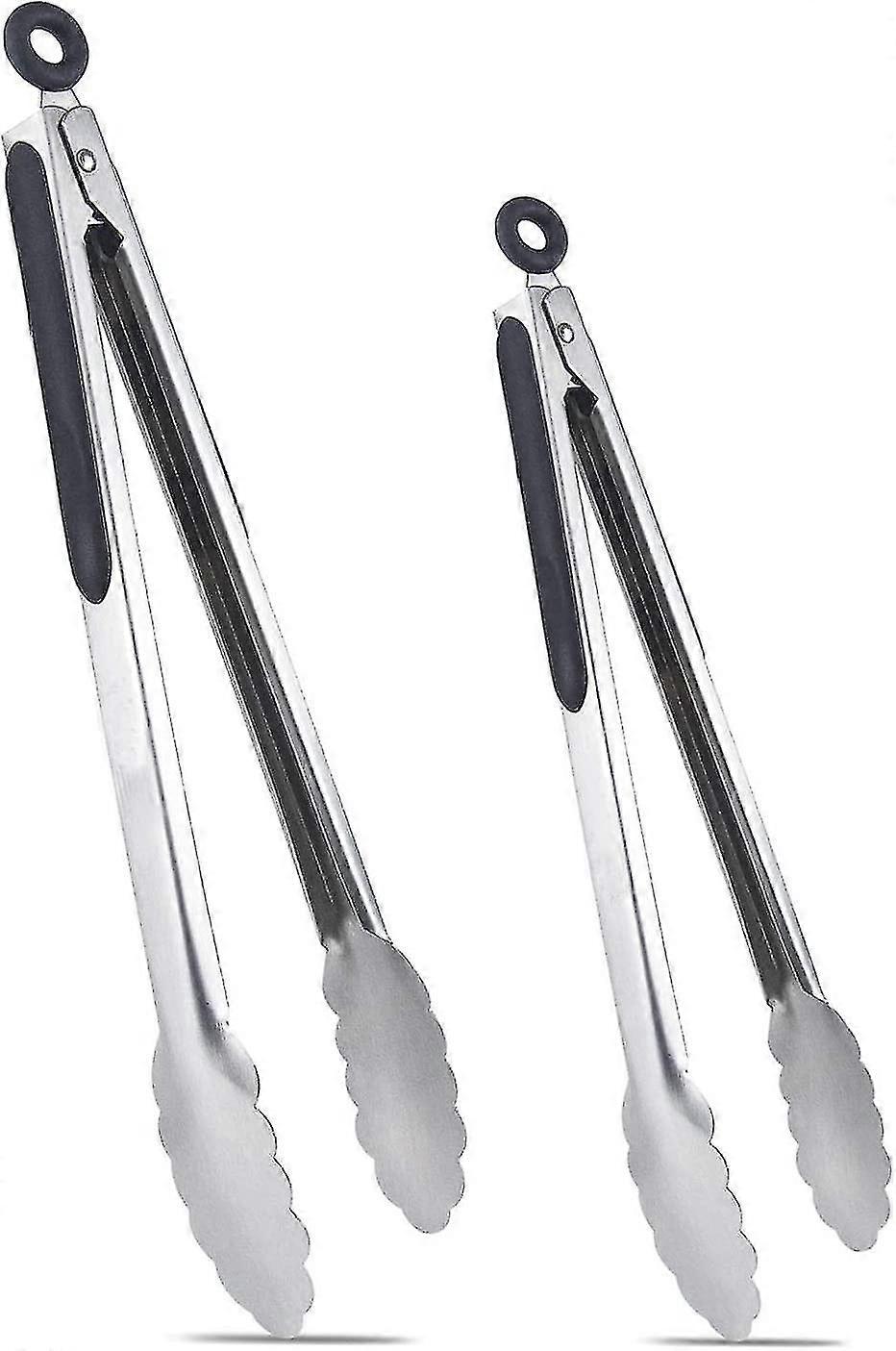 Newway Bbq Tongs - Set Of 2 12 And 16 Inch Long Stainless Steel Kitchen Tongs With Non-slip Handle compatible Grilling And Salad