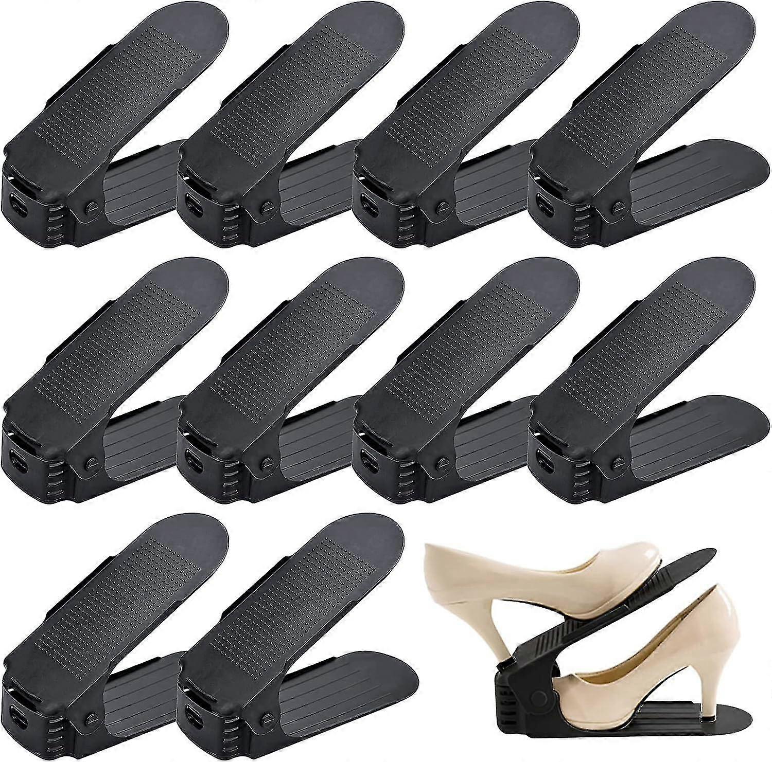 Newway 10 Pack Adjustable Shoe Organizer Space Saving compatible Family/home Black