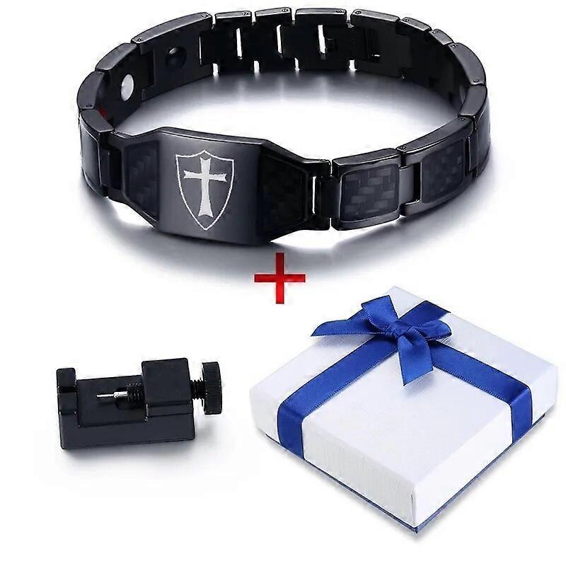 Stylish Carbon Fiber Knights Templar Shield Bio Energy Bracelets for Men Cross Faith Therapy Male