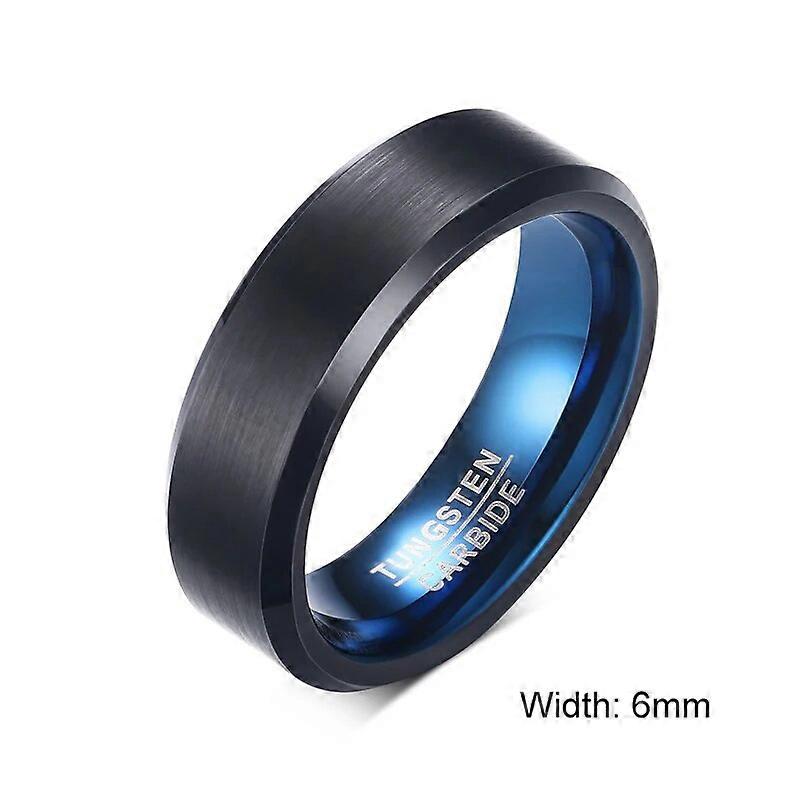 6mm 8mm Black BlueTungsten Wedding Bands Rings for Men, Matte Brushed Finish Center,US Size 4 to 12