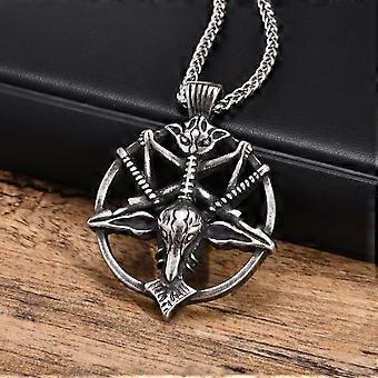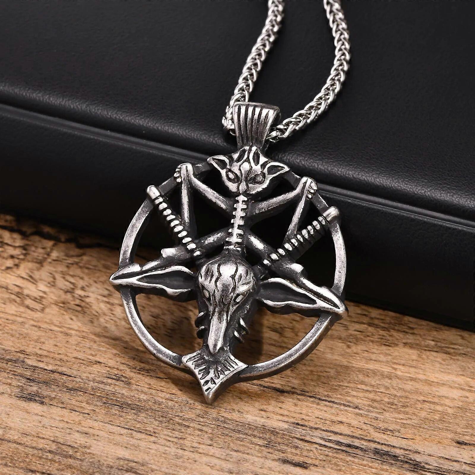 Rock Punk Demon Satan Inverted Pentagram Baphomet Goat Head Skull Pendant Necklaces for Men Gifts Jewelry