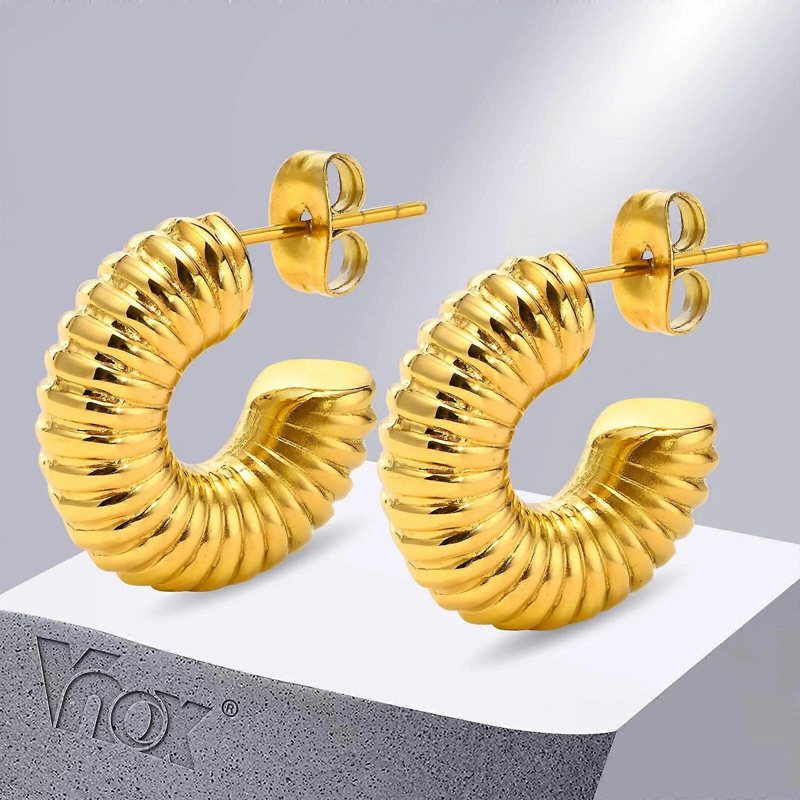 Chic C Shaped Hoop Earrings for Women, Gold Color Stainless Steel Metal Round Ear Accessory to Female Party Gifts