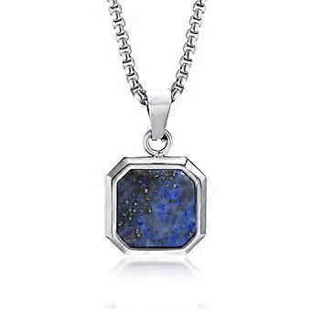 Men Square Stone Necklaces, Geometric Natural Stone Pendant, PVD Gold Color Stainless Steel Collar Gifts for Him