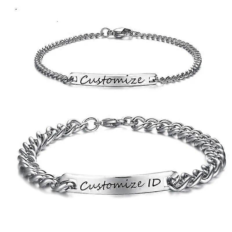Free Engraving Customized Couple Promise Bracelet Stainless Steel Charm ID Bracelets for Women Men Personalized Pulseira