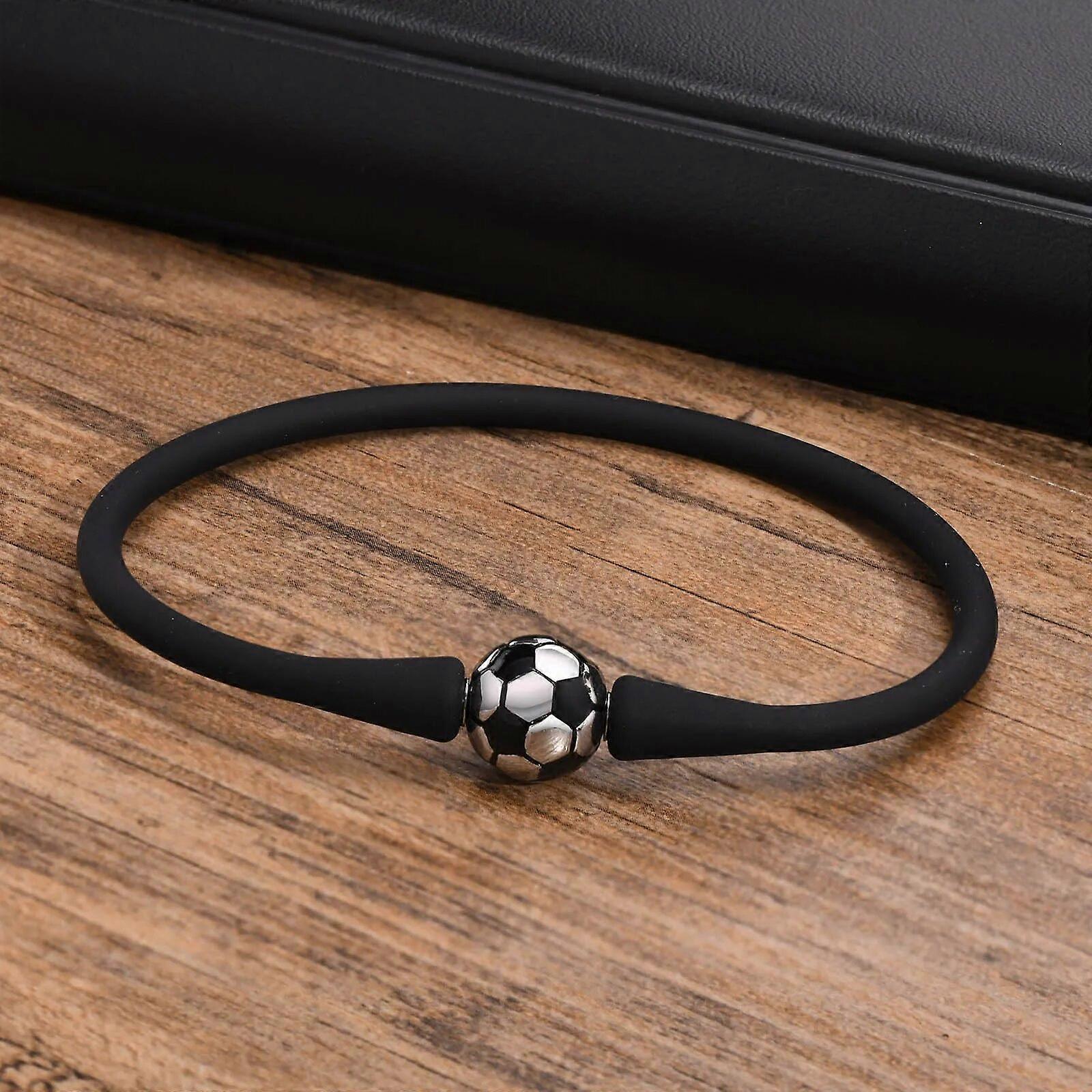Men Casual Black Slicone Bracelets with Stainless Steel Basketball Charm Sports Gift Jewelry