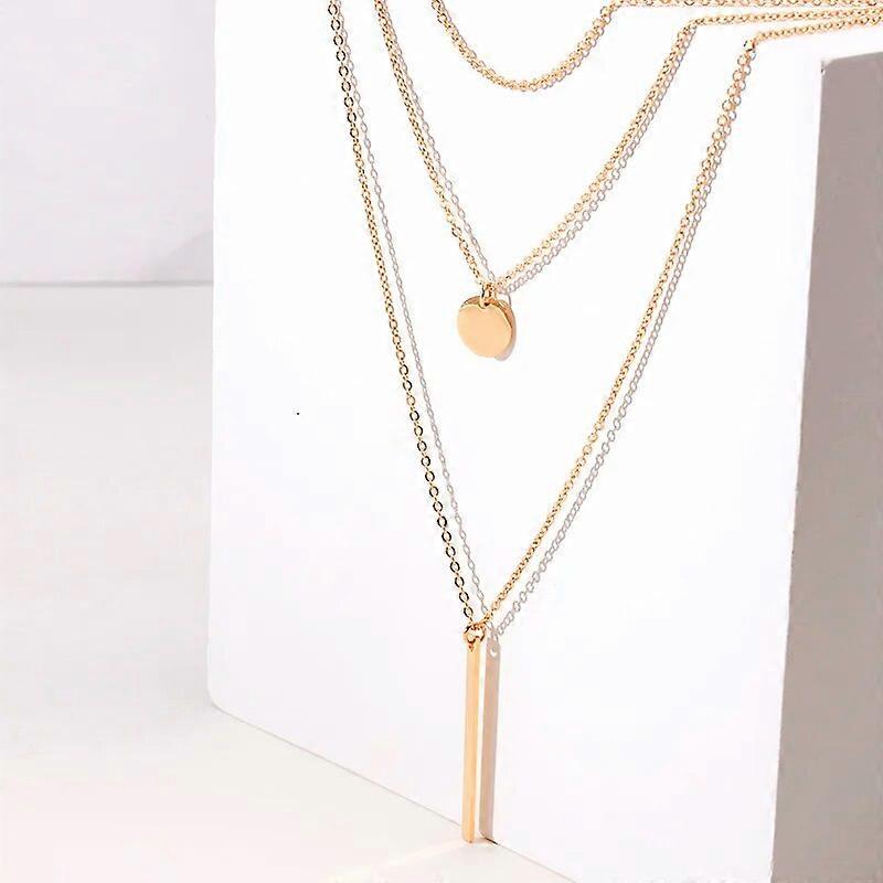 3 Layers Necklaces for Women, Chic Layerd Layering Geometric Bar Coin Pendant, Minimalist Stainless Steel Neck Collar