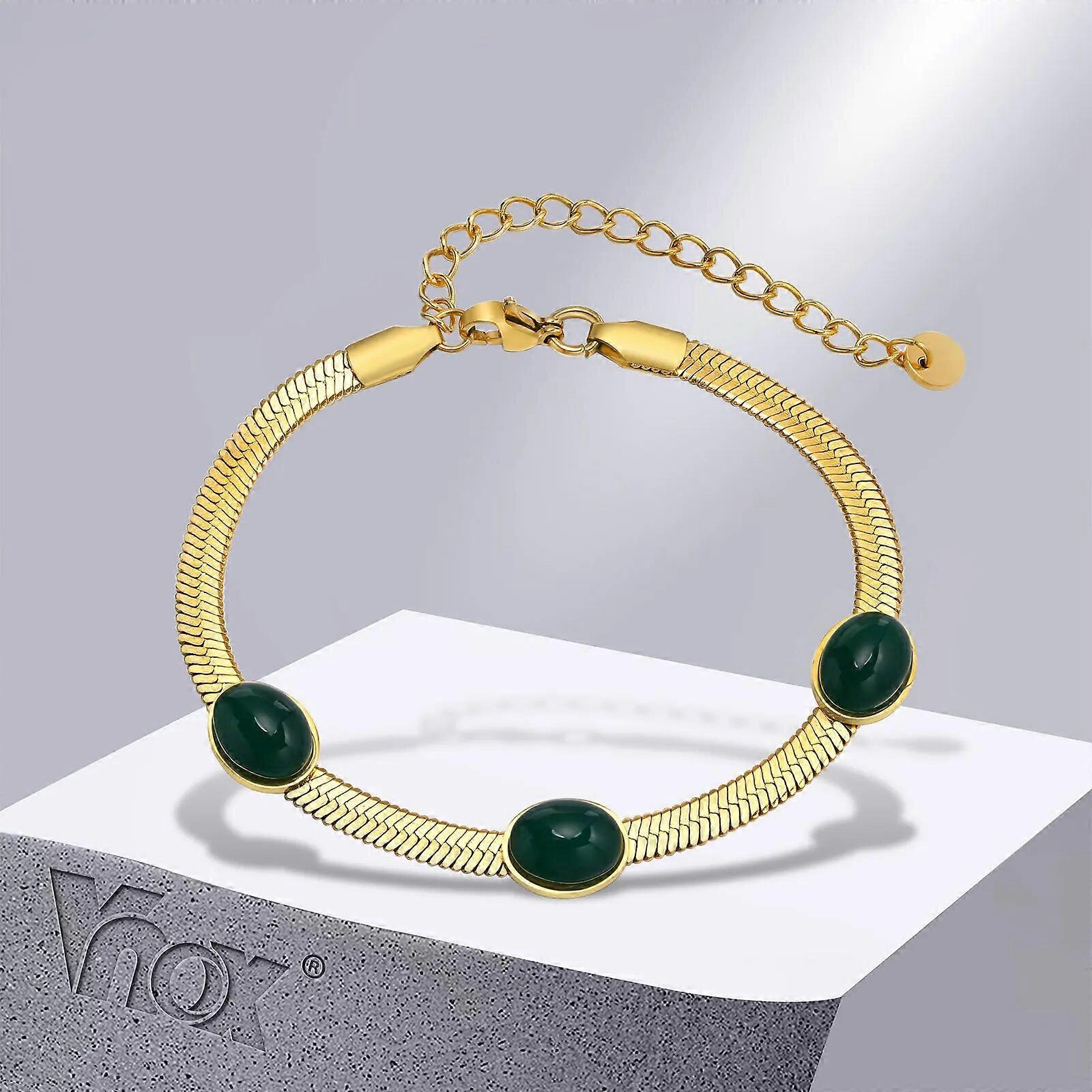 4mm Herringbone Bracelets for Women Girls, Stainless Steel Flat Snake Chain Bracelets, Adjustable Natural Stone Wristband