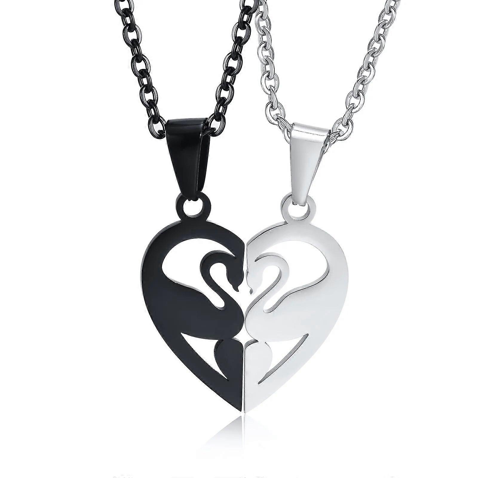 His and Her Heart Love Swan Couple Necklaces for Women Men, Stainless Steel Metal Valentine's Day Gift Jewelry