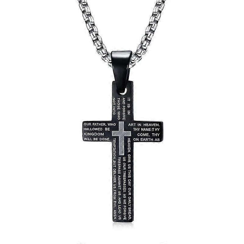 Classic Cross Pendants & Necklaces for Men Engraved Bible Prayer Stainless Steel Jewelry Free 24" Chain