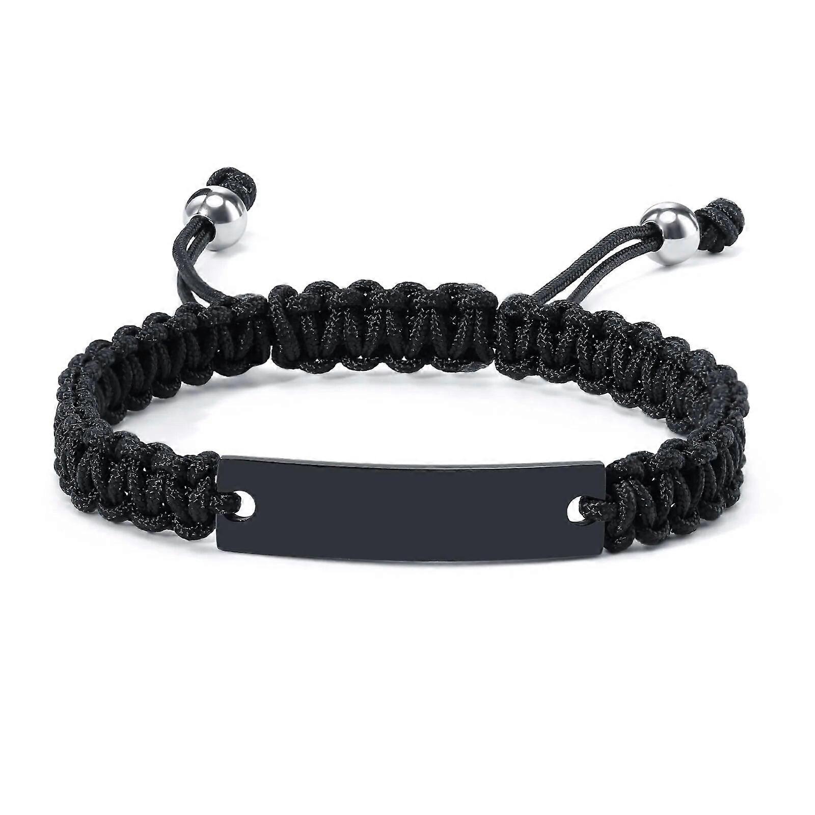 Free Custom Stainless Steel ID Couple Bracelet for Women Men,Adjustable Handmade Braided Rope Chain Lovers BFF Gift Jewelry