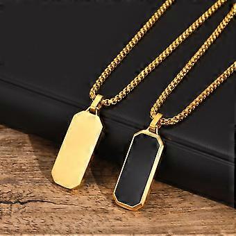 Men Stylish Geometric Necklaces for Boys, Black Stainless Steel Square Rectangle Bar Pendant Collar, Gifts for Him Jewelry