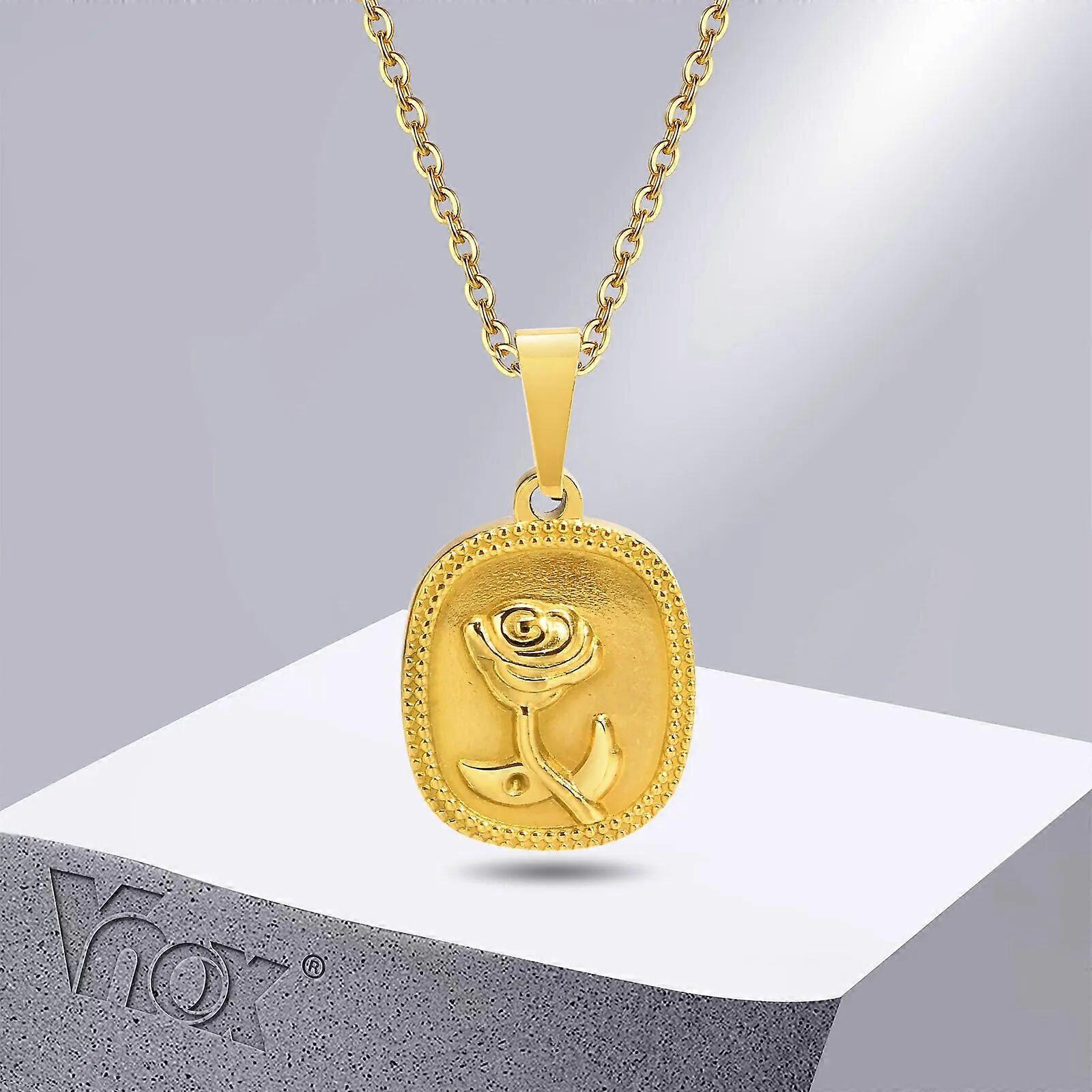 Elegant Gold Color Rose Necklaces for Women Mom Mother Gift Jewelry,Stainless Steel Flower Pendant Collar Accessory
