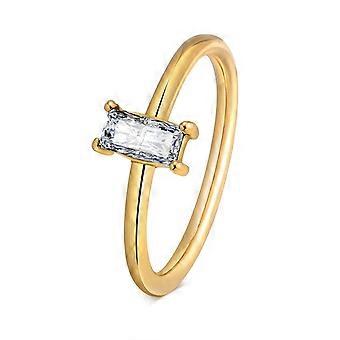Square Stone Ring for Women, AAA CZ Stone Solitaire Ring, Gold Color Slim Band, Minimalist Chic Vintage Girls Jewelry