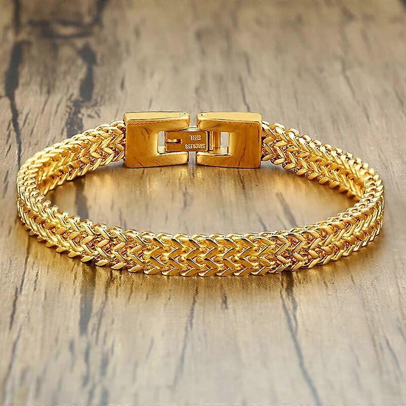 Retro Link Chain Bracelets for Men Double Overlap Interlocked Curb Chain Stainless Steel Punk Cubic Chain Male Jewelry