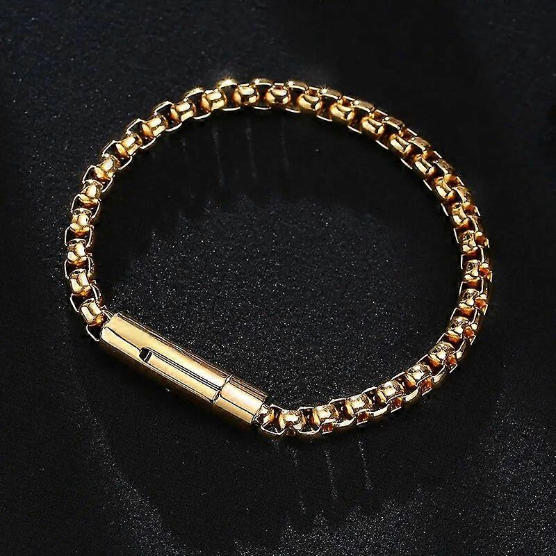 Stylish Stainless Steel Box Chain Bracelet Men Jewelry,6MM Wide Metal Link Chains Wristband Gift for Him, 21.5cm