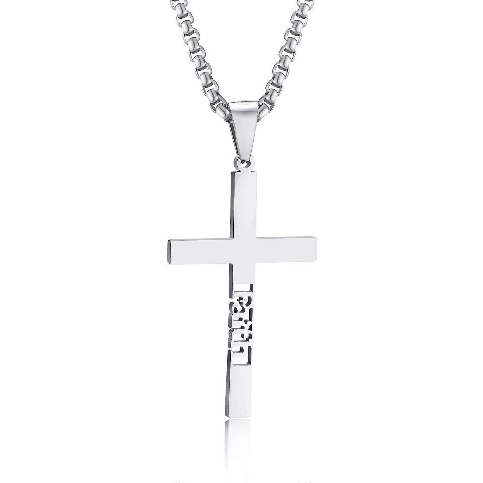 Men Cross Necklaces, Faith Cross Pendant with Box Chain, Religious Christian Jewelry Gifts for Dad Husband Grandpa