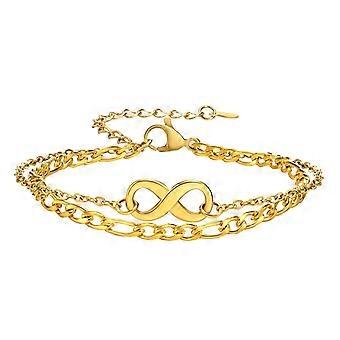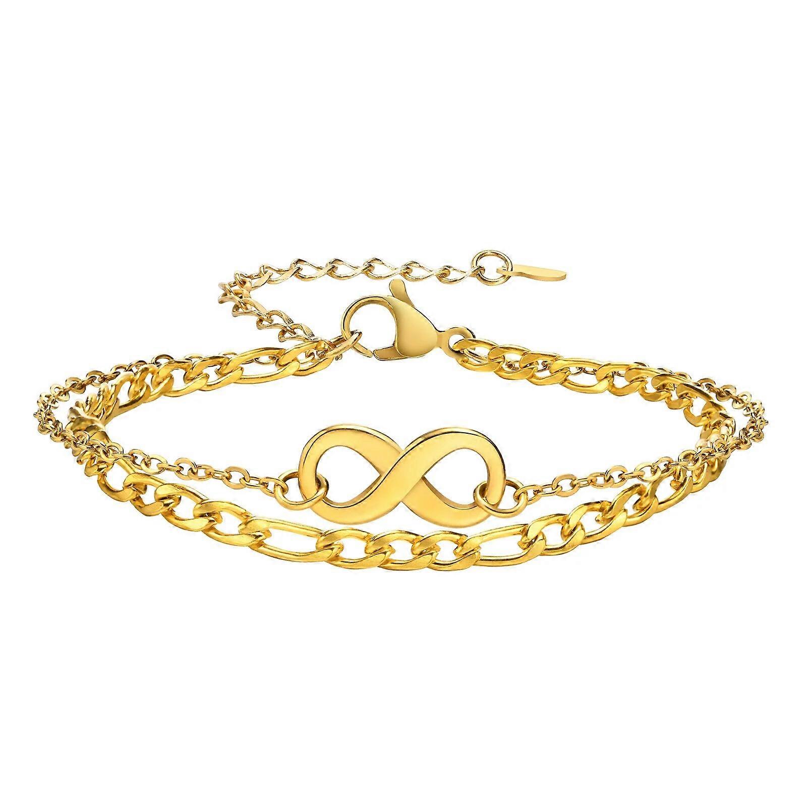 Chic Double Chain Bracelets for Women,Gold Color Stainless Steel Paperclip and Curb Links Wristband,Her Birthday Gifts