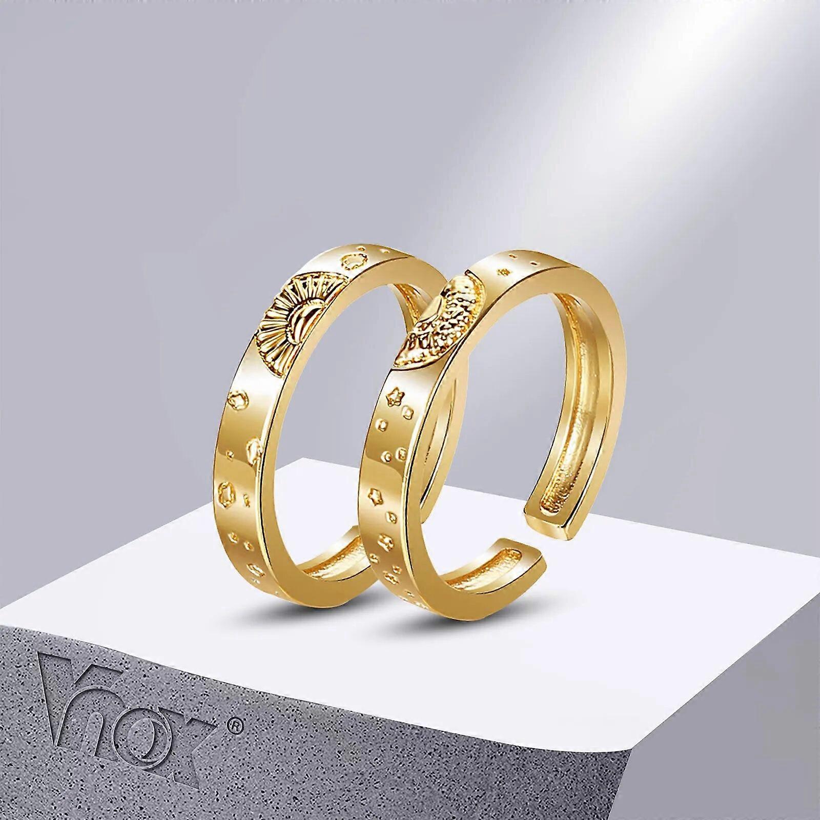Sun and Moon Stars Couple Rings Set for Women Men,Gold Color Metal His and Her Love Promise Ring for Engagement Wedding