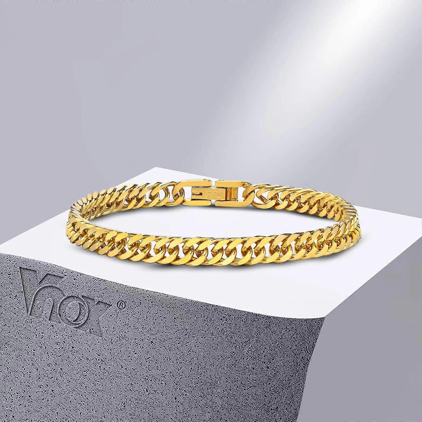 5.3mm Cuban Link Chain Bracelet for Women, Gold Color Stainless Steel Italian Curb Chain Wristband Gifts Jewelry
