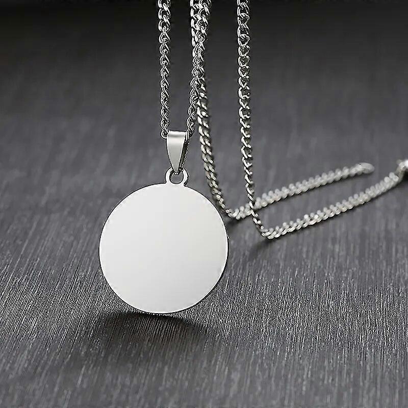 Free Custom Engraving Name Love Logo Info Coin Necklaces for Women Man with Stainless Steel Free Chain 24"