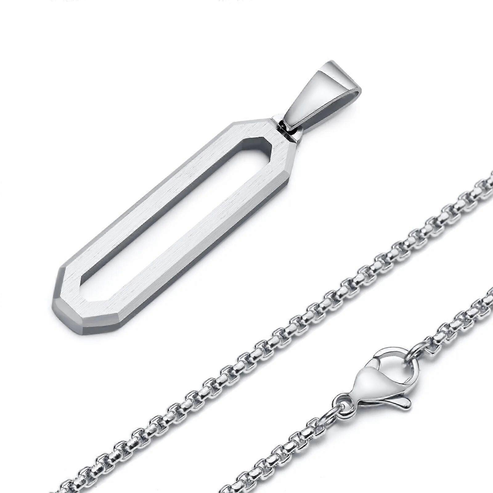 Men Geometric Necklaces, Black Stainless Steel 3D Pendant with Box Chain, Casual Simple Gents Neck Collar Jewelry Gift