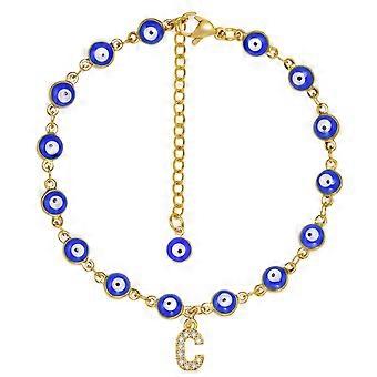 Initial Anklet for Women with Evil Blue Eye Beads, Gold Color Stainless Steel Chain A-Z Letter Anklets Summer Jewelry
