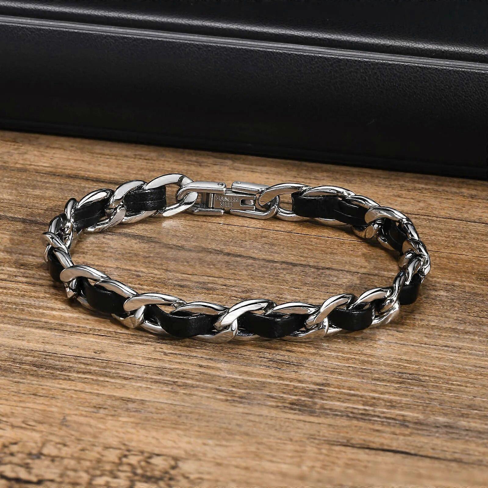 Men Black Chain Bracelets for Women, Stylish 7.5MM Stainless Steel Cuban Links Chain Wristband Gift Jewelry