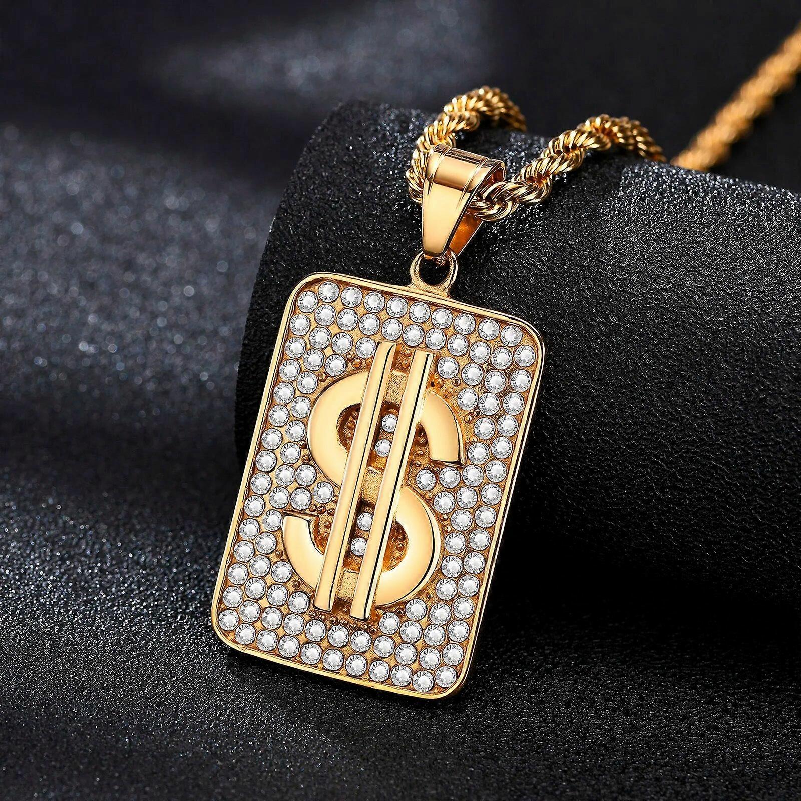 Gold Color Dollar Sign Necklaces for Men with Cuban Chain,Hip Hop Money Dollar Pendant Collar Party Jewelry
