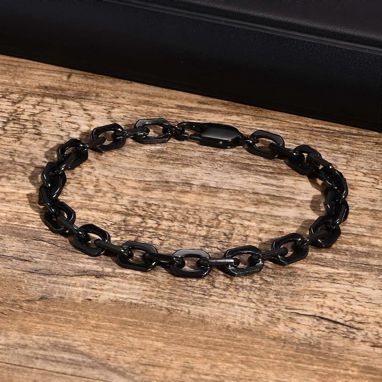 6.5MM Belcher Chain Bracelets for Men-Solid Stainless Steel Metal Square Geometric Links Wristband, Gift to Him Jewelry
