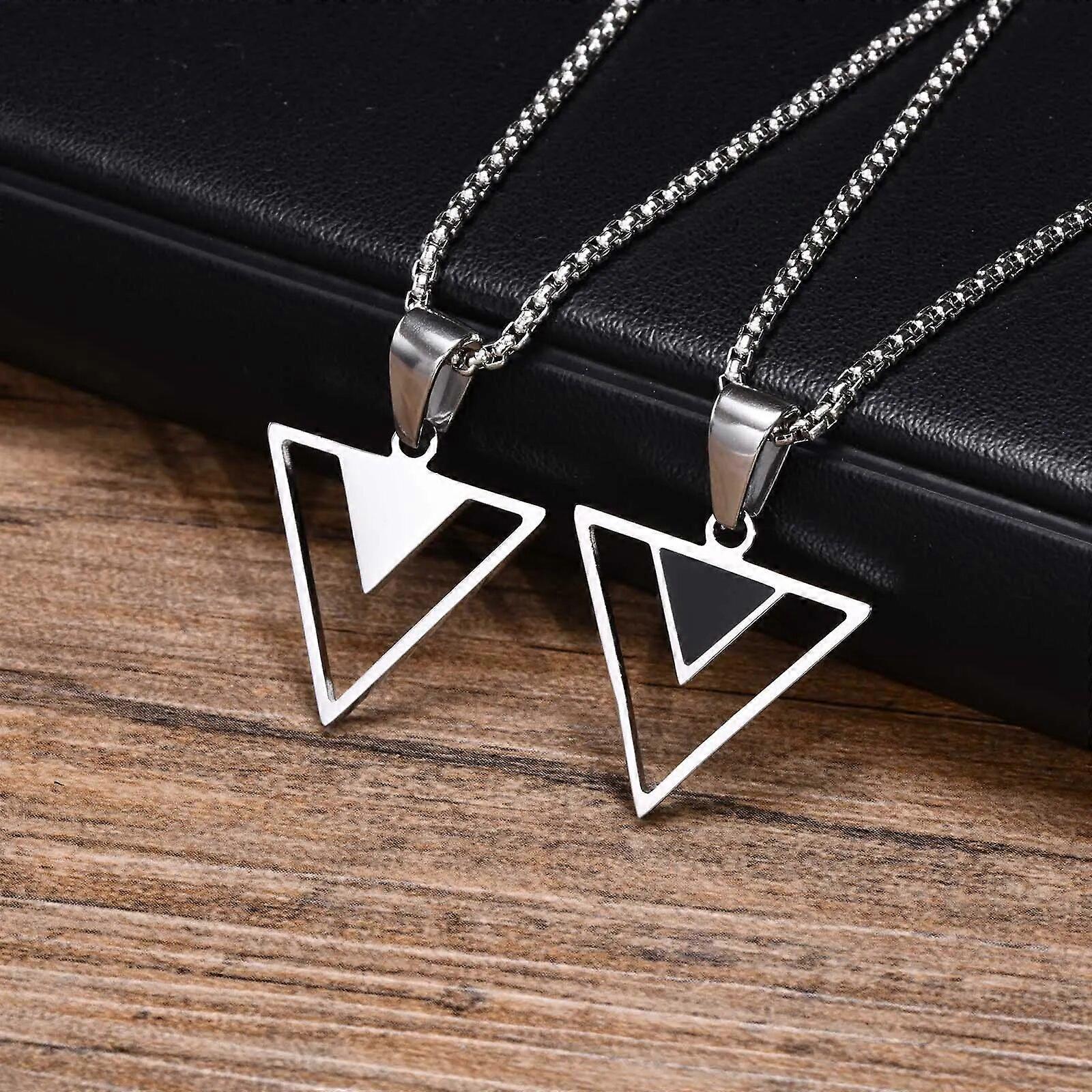 New Fashion Triangle Pendant Necklace for Men Boys, Minimalist Stainless Steel Hollow Geometric Collar Male Jewelry Gift