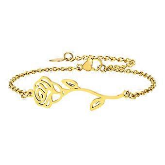 Vintage Rose Charm Bracelets for Women, Gold Plated Stainless Steel Elegant Plant Bracelets, Chic Dainty Girls Jewelry